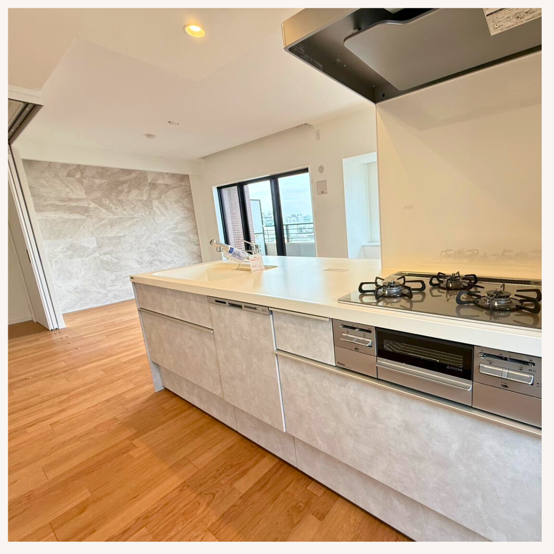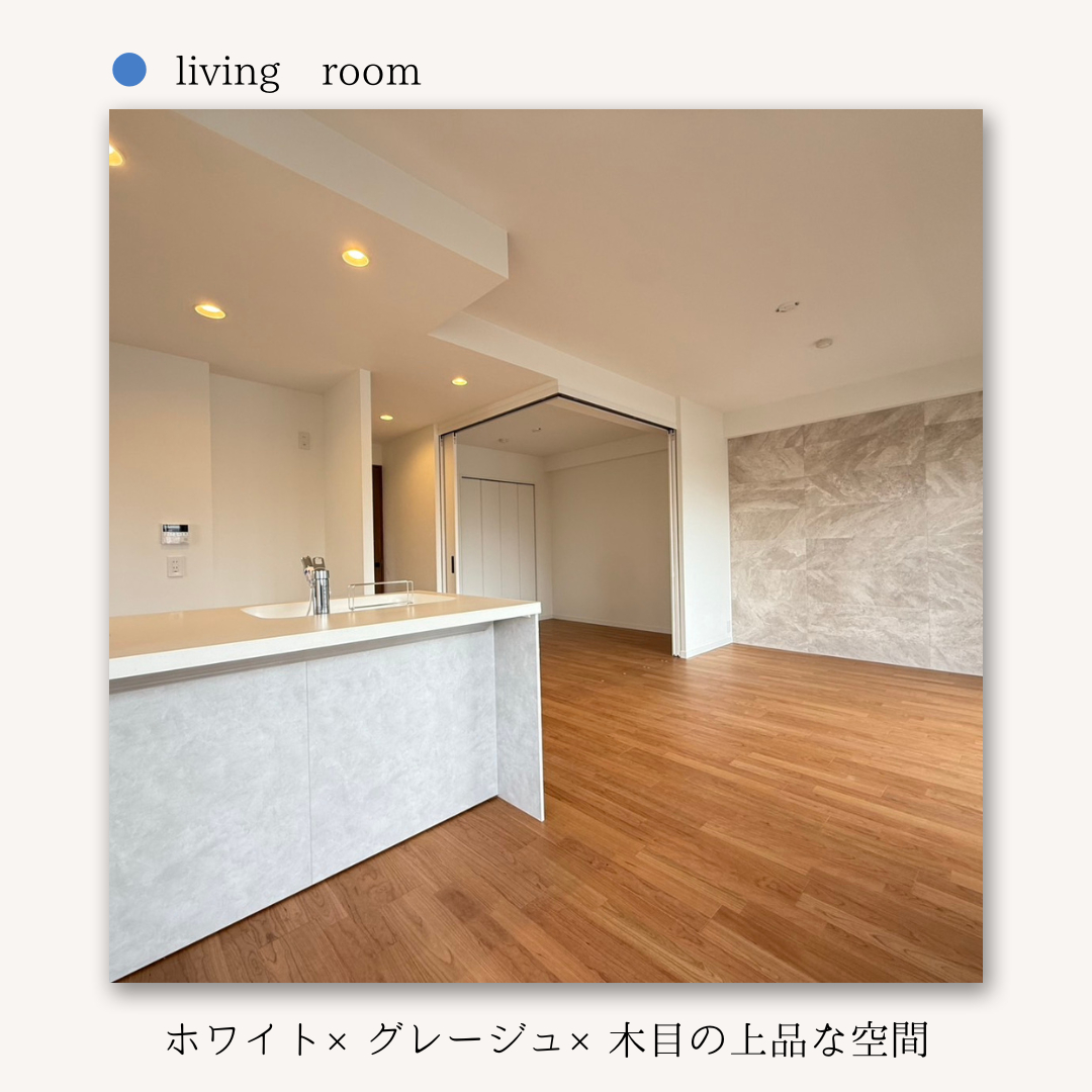 ホワイト×グレージュ×木目調と上品さのある 仕上がりになっております。