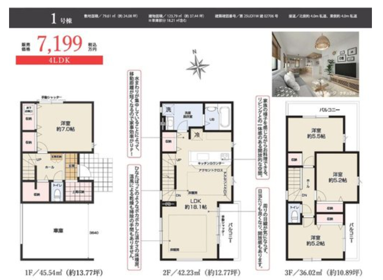 緑豊かな住宅地 / 通風良好 / 全居室フローリング / ウォークインクローゼット / 3階建以上 / リビング階段