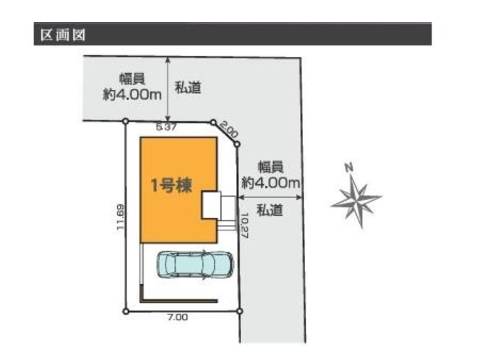 | 接道状況 | 無、北4m幅(接道幅5.4m)、東4m幅(接道幅10.3m) |