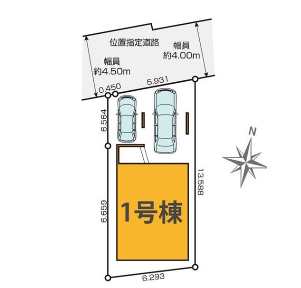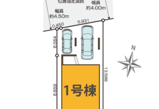 | 接道状況 | 道路幅:4m~4.5m、アスファルト舗装、北西側約4.06m位置指定 |
