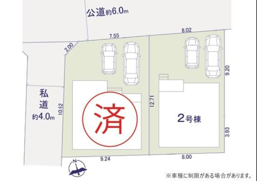 カースペース並列駐車2台確保(車種による)