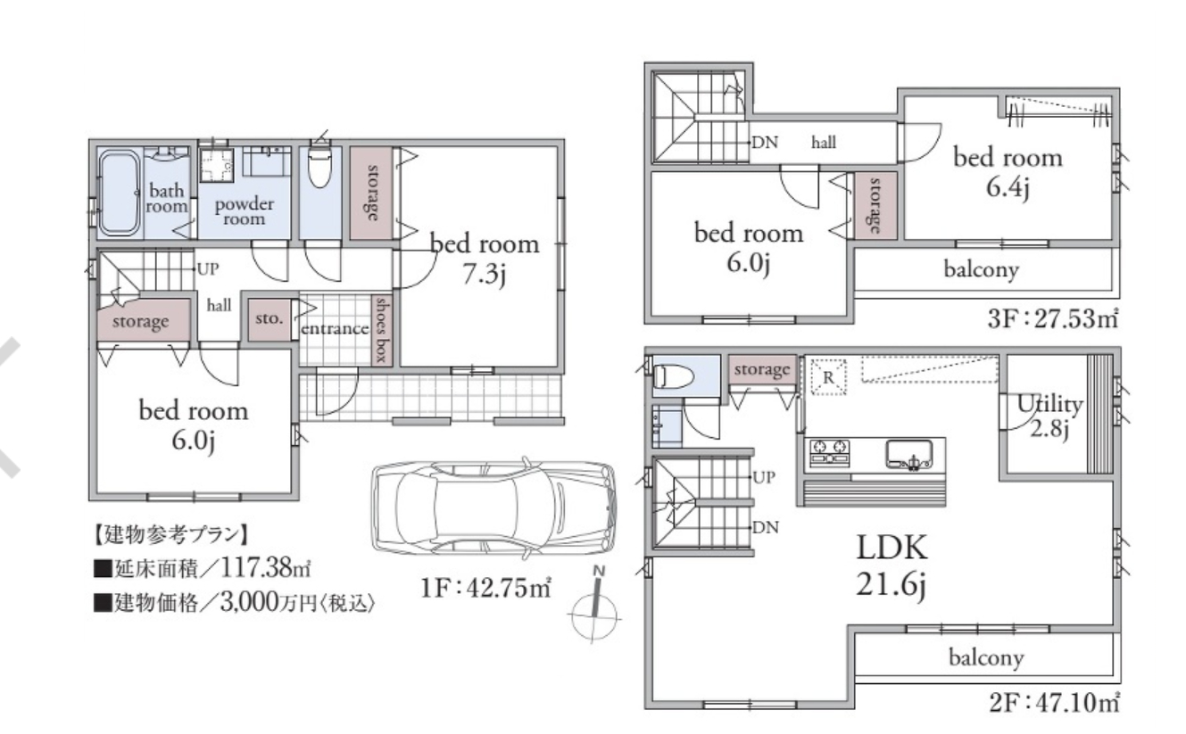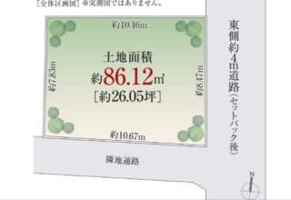 | 土地面積 | 86.12㎡(実測))/26.05坪 |