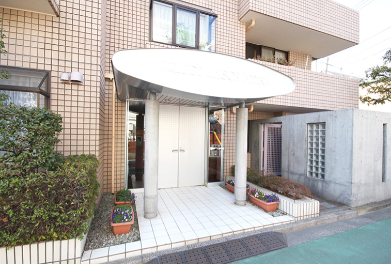 グレード感あるタイル貼りの外観と綺麗な共用部