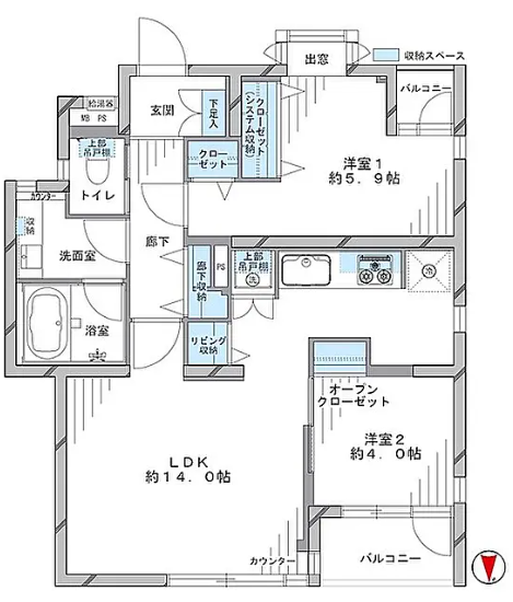 システムキッチン・ 食器洗い乾燥機・給湯・ クローゼット・ シューズボックス・ バルコニー・ペット可