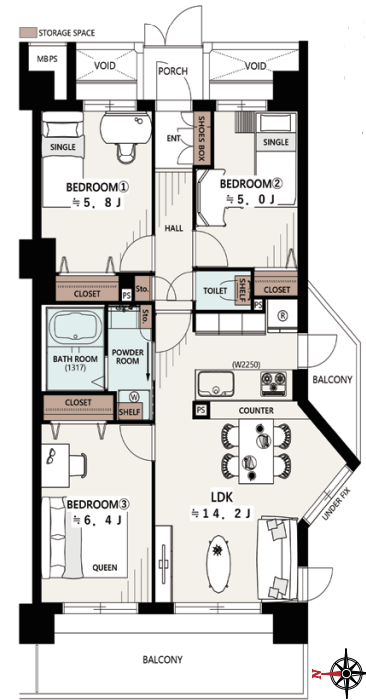 角住戸 / 陽当り良好 / 共有施設充実 / 全居室収納 / 駅まで平坦 / 始発駅 / 高層階 / シャワー付洗面化粧台