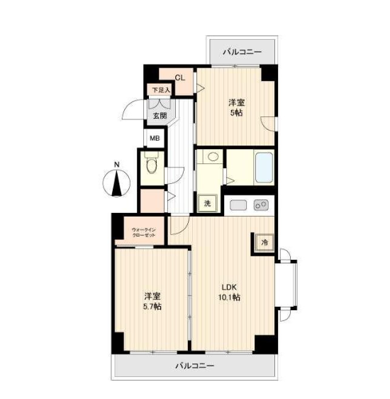 洗濯物が乾きやすい、日当たり良好な南向きのバルコニー