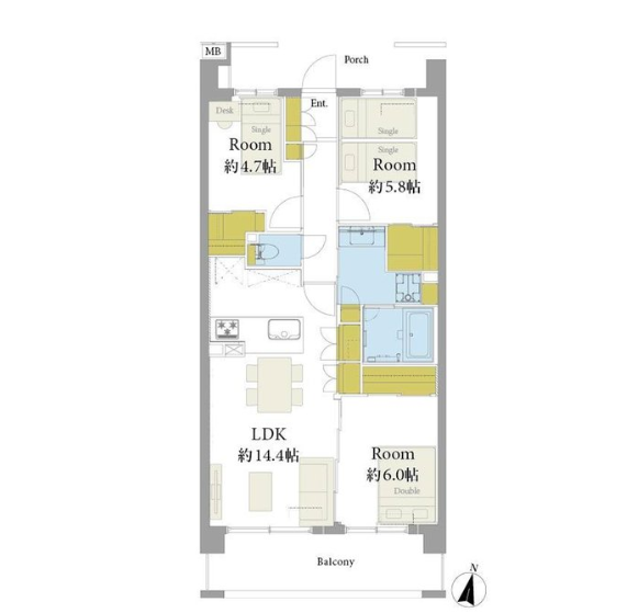| バルコニー面積 | 12.60㎡・ポーチ 7.25㎡ |